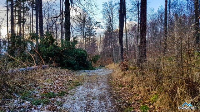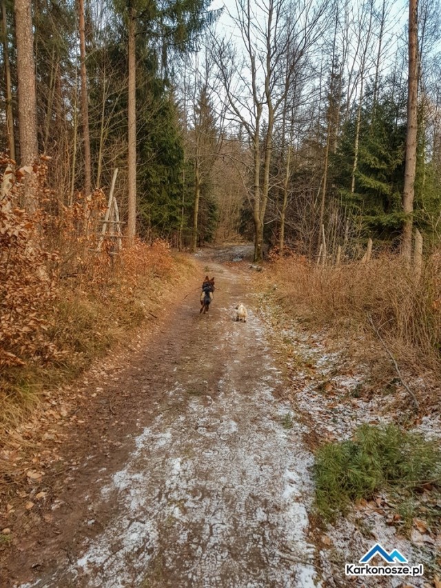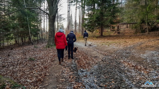 W tym miejscu kończy się nasza wycieczka. Wrócić możemy dwiema trasami - tą samą, którą weszliśmy na szczyt lub też łagodniejszą, omijając wzniesienia, kierując się w stronę Staniszowa żółtym szlakiem, a później odbijając w prawo na Sosnówkę. Ominiemy tym samym spory kawałek trasy, którą wchodziliśmy, ale mimo wszystko ostatnie 300 metrów będziemy szli tym samym szlakiem.