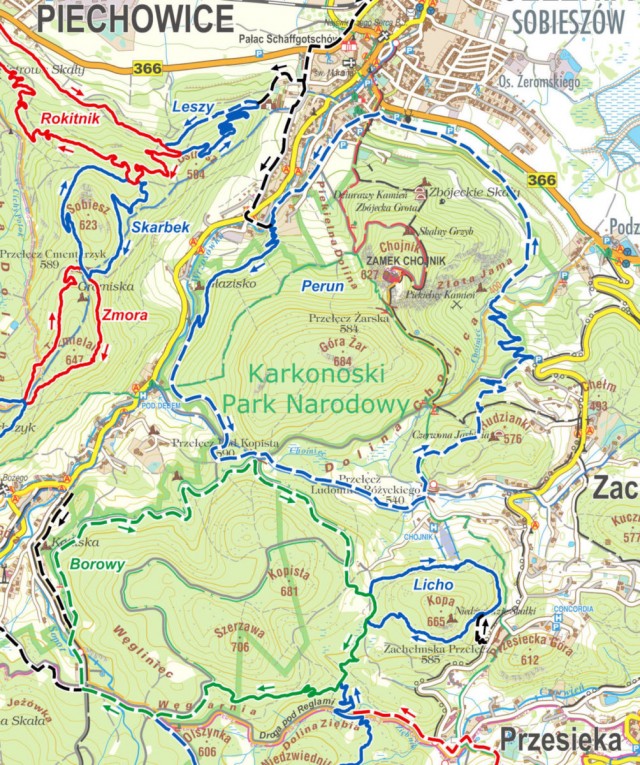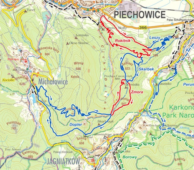 1. Pętla Piechowice (część zachodnia) - trasa między Michałowicami, Piechowicami, a Jagniątkowem (długość 19,5 km):