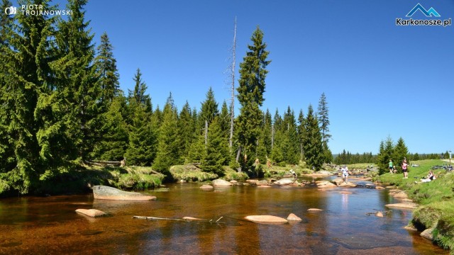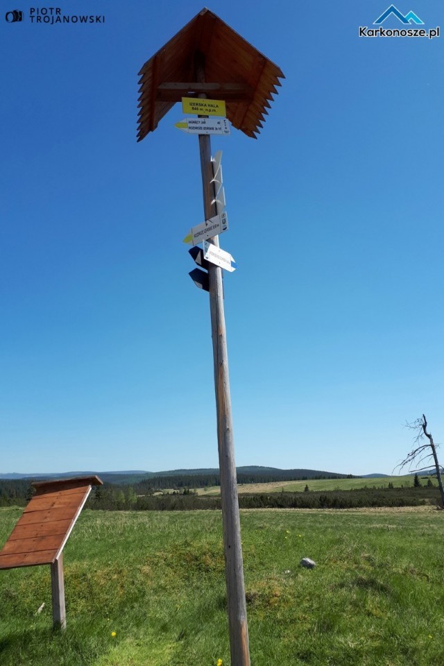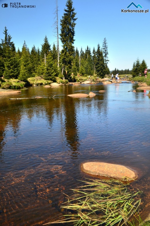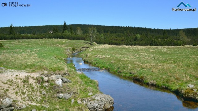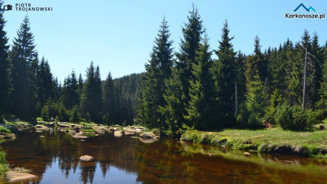 Po drodze mijamy jedno z najbardziej uroczych miejsc w Górach Izerskich – rzekę graniczną Izerkę. Na większości map zaznaczone jest miejsce Pramen Jizery, czyli źródło Izery nieco poniżej wierzchołka Smrka, leżącego po czeskiej stronie. Jednak nie ma pewności, gdzie znajduje się te pierwsze, najwyżej położone źródło. Ze stoków Smrka i Stogu Izerskiego spływa wiele potoków i strużek tworzących dalej graniczną rzekę.