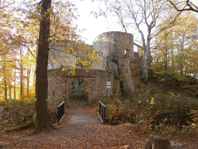 To tutaj wznoszą się ruiny średniowiecznego zamku, ukryte w lesie, z dala od tłumów, pobudzają wyobraźnię i napełniają chęcią do nowych odkryć na szlaku, tym bardziej, że wieczorami po murach zamkowych przechadza się niesłusznie zamordowany kiedyś kapelan. To tutaj też sięgał park romantyczny stworzony przez właścicieli pobliskiego zamku w Karpnikach, księcia Wilhelma oraz księżnej Marianny. To dzięki nim na skałach stanął mosiężny lew, który miał bronić dostępu do tego raju na ziemi.