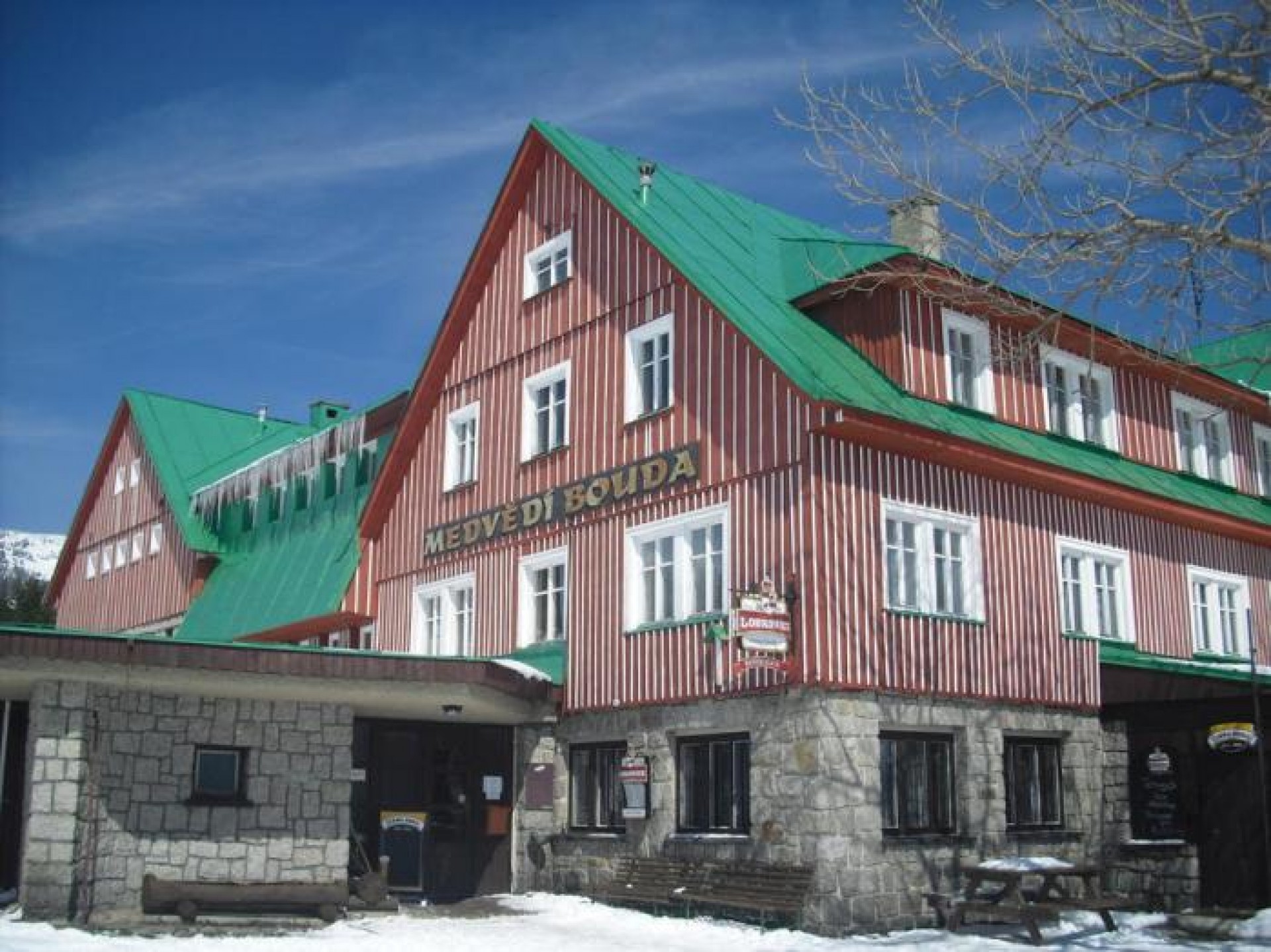 Schronisko Medvedi Bouda - jak tam dotrzeć, czy jest możliwość zjazdy na nartach, czy można wjechać wyciągiem, oferta schroniska, noclegi, restauracja, galeria zdjęć