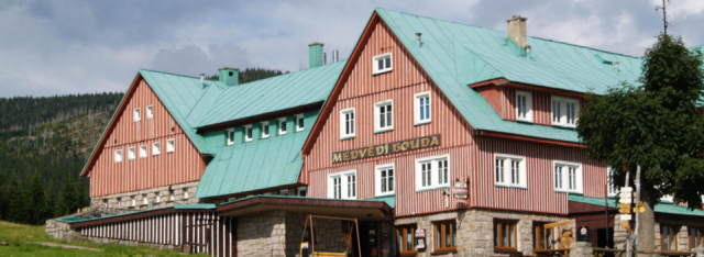 Schronisko Medvedi Bouda to obiekt z historią. Powstało ono na początku XIX wieku i już od wtedy było związane z zapewnianiem noclegów wędrójącym turystom. Tą formę zachowało do dzisiaj. Cały czas przechodzi stopniową rekonstrukcję i odbudowę. Jest położone 5 km od centrum Špindlerova Mlýna, na wysokości 1060 m n.p.m. Dlatego właśnie jest to idealna baza wypadowa na górskie, piesze wędrówki, ale również turystkę rowerową i zimową.