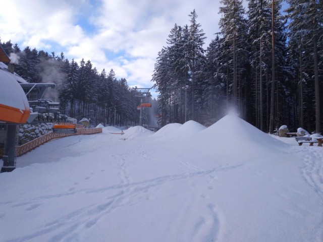 Przygotowane są dla Państwa 3 trasy o różnym poziomie trudności. Niebieska o długości 1100 m oraz dwie czerwone – 800 m i 600 m. Stwarzają one idealne warunki do stawiania swoich pierwszych kroków w sportach zimowych. Bardziej wymagający również znajdą coś dla siebie. Szerokie, równomiernie nachylone trasy są nie tylko ratrakowane, ale także oświetlane po zmroku więc pozwalają cieszyć się wypoczynkiem od rana aż do późnej nocy.