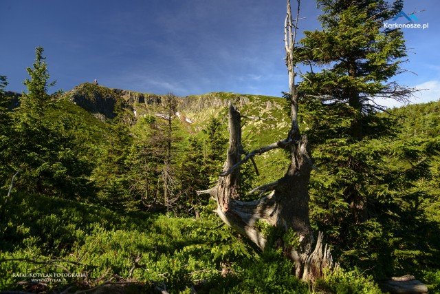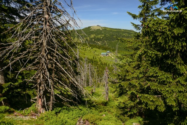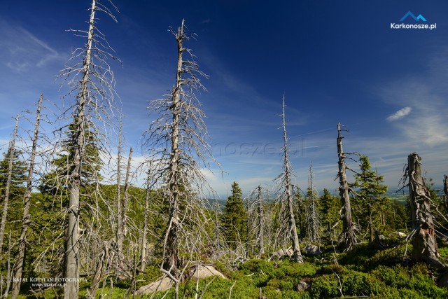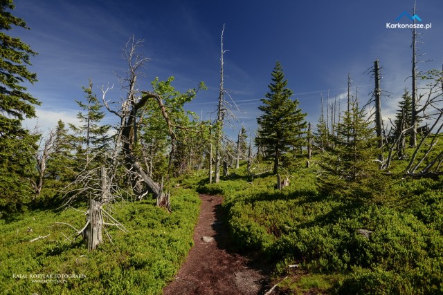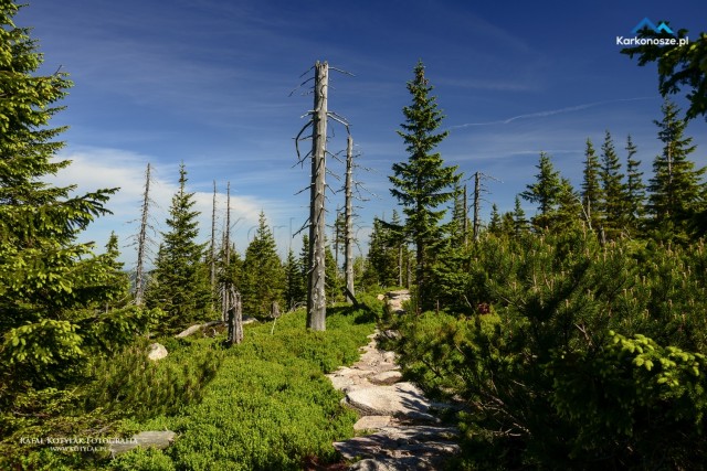 Tutaj szlak przebiega przez najciekawszą część „ Martwego Lasu” , którego suche drzewa wyglądają jak rzeźby i w połączeniu z odradzającym się lasem, na tle Śnieżnych Kotłów tworzą wyjątkowe i jedyną w swoim rodzaju scenerię.